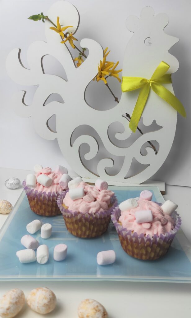 Cytrynowe babeczki z kremem marshmallow możesz zrobić na każdą okazję, ale dobrze sprawdzą się w okresie wielkanocnym. Z pianek, które Ci zostaną możesz zrobić ciekawą dekorację tak, aby babeczki zachwyciły nie tylko smakiem, ale i wyglądem. Ciekawym połączeniem są tu wiórki kokosowe i smak cytryny, a jeśli chcesz podkręcić smak dodaj skórkę z otartej cytryny.